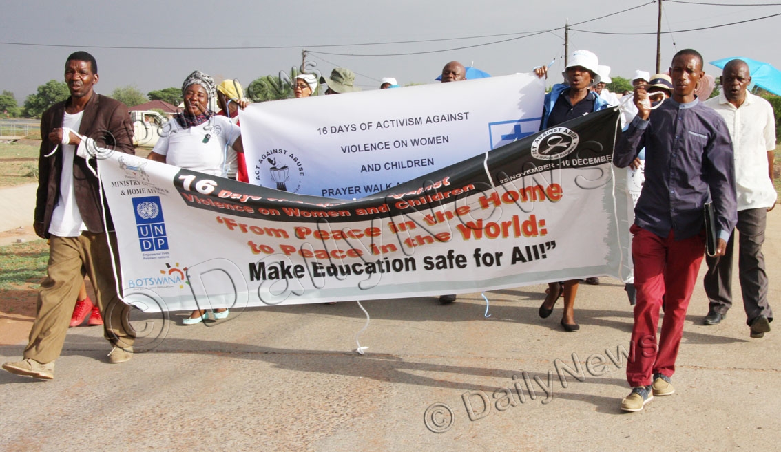 The march organised by the United Congregational Church of Southern Africa (UCCSA) in Kumakwane was part of the 16 days activism against GBV campaign.UCCSA Kumakwane intern minister, Ms Thunga Chimbombi said there was need for the church to pray and play an active role in the fight against GBV.