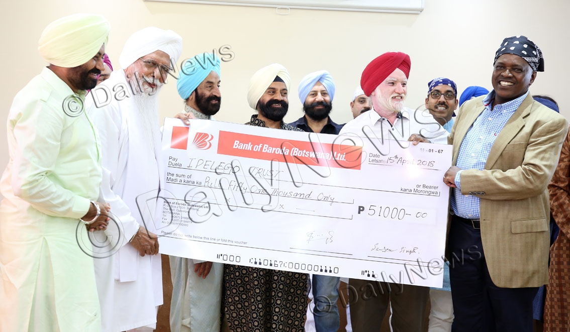 The Sikh also gave Mr Masisi a cheque worth P51 000 to be handed to Ipelego Trust.