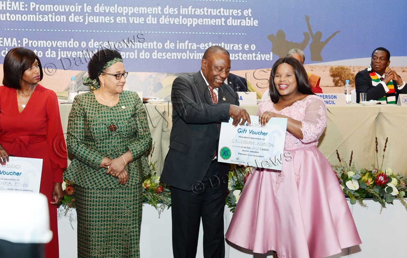 His winning piece, the third under his belt, was a pictorial of the 37th SADC Heads of State and Government Summit in Pretoria, South Africa, which also bid Presidents Khama and Dos Santos farewell. ENDS