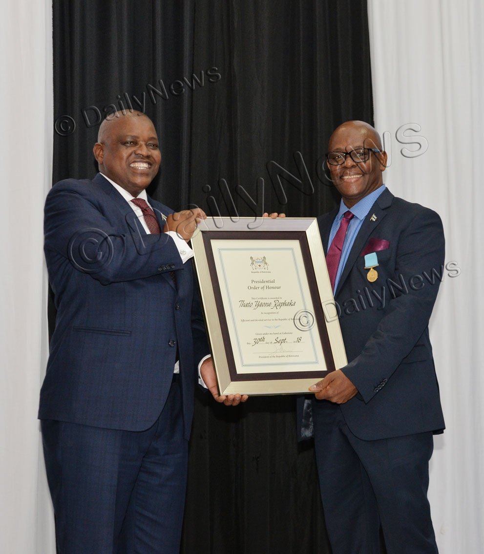 Among those who received the Presidential Order of Honour were Ghanzi South legislator, Mr Christiaan De Graaff, Permanent Secretary in the Ministry of Environmental, Natural Resources Conservation and Tourism, Mr Thatoyaone Raphaka, reonwed public officee, Ms Ruth Seretse as well as members of the housing appeal committee.