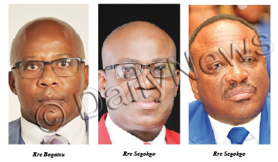 Rre Christopher Bogatsu wa Alliance for Progressives (AP), Rre Thulaganyo Segokgo wa Botswana Democratic Party (BDP) le Rre Kenneth Segokgo wa Umbrella for Democratic