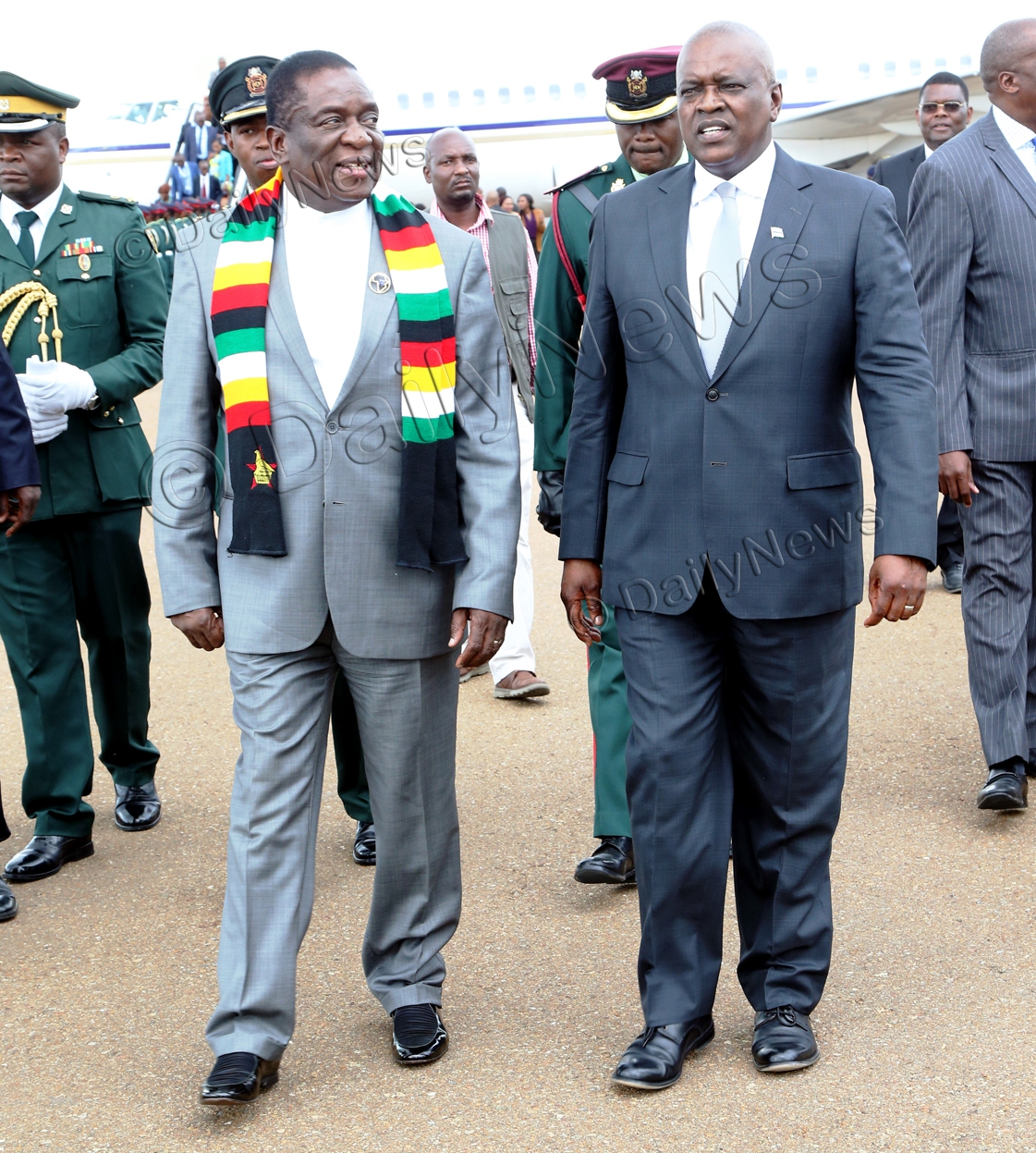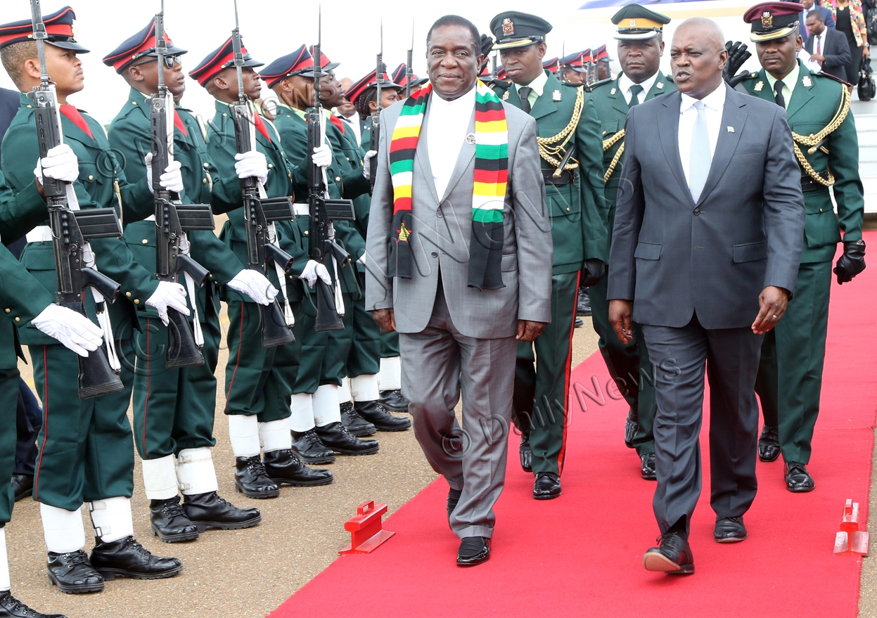 President Dr Mokgweetsi Keabetswe Masisi this afternoon welcomed his Zimbabwe counterpart, President Emerson Mnangagwa at Maun airport .