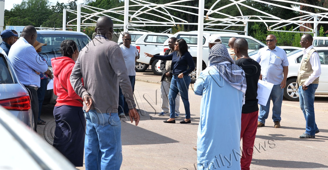Assistant Minister of Agricultural Development and Food Security, Ms Beauty Manake and permanent secretary, Mr jimmy Opelo addressing farmers who came to apply for permits in Gaborone today (April 4).