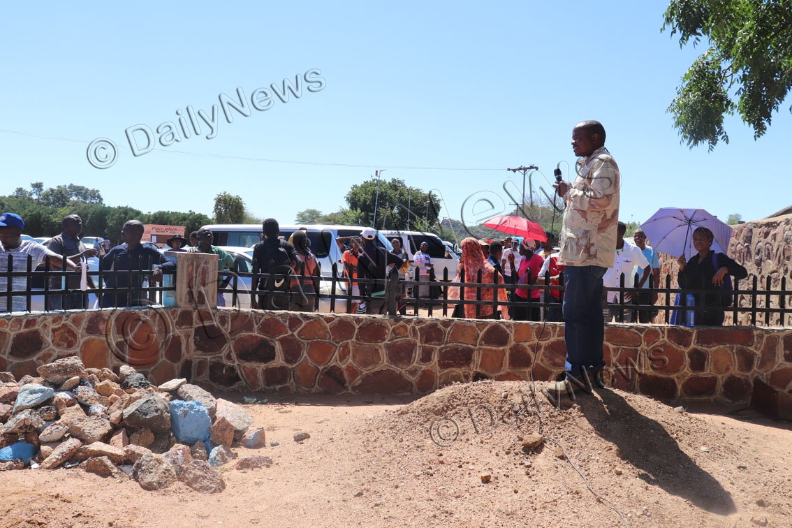 Mmopane councilor, Mr James Lekgetlho managing residents queuing to tender applications for permits at Mmopane main kgotla on yesterday.