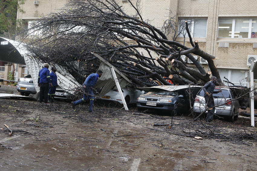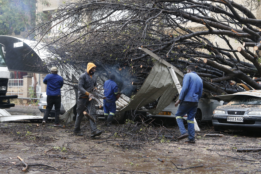 A huge tree fell on parked cars at Poso House following rain in Gaborone on Tuesday. no injuries were sustained