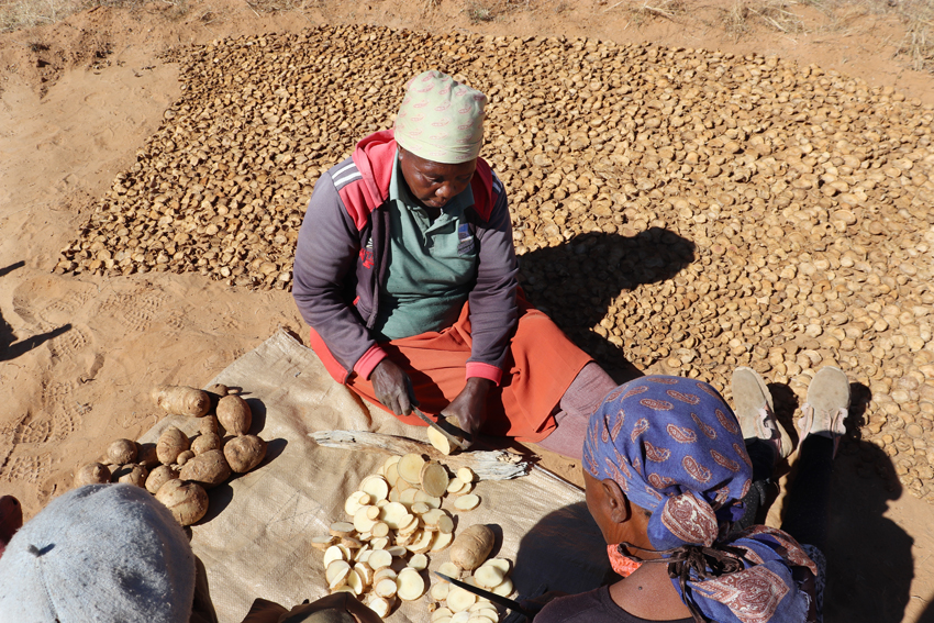 Some had to leave their school going children with relatives to go and harvest the potato like starchy and bitter tuber, which is usually oblong or rounded thickening or outgrowth of a subterranean stem.