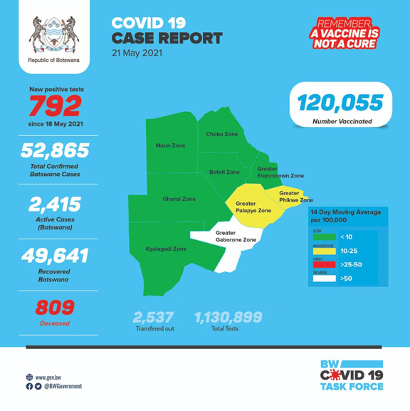 Twenty-five people have died due to COVID–19 related illnesses between May 18 to 21, bringing the total number of deaths to 809. According to the CIVID–19 case report of May 21, a total of 792 new cases were registered since May 18. So far 120, 055 people have been vaccinated. ends