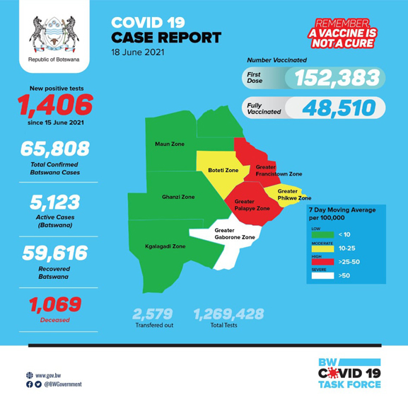 He told Botswana Television today that the country also recorded 1 406 positive cases making a total of 5 123 cases. end