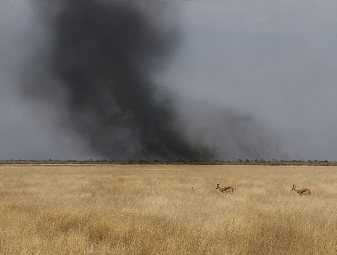 When the BOPA news team visited the area on Tuesday, three separate fires were spotted with a major one burning near the CKGR/Khutse Game Reserve borderline while several antelopes and ostriches were busy grazing.