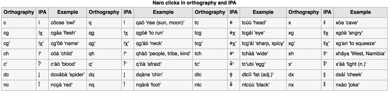 While other languages such as Shona, Ndebele, and Afrikaans already have established orthographies, the first two in Zimbabwe, and Afrikaans in South Africa and Namibia, Naro is peculiar in that its alphabet originates in Botswana.