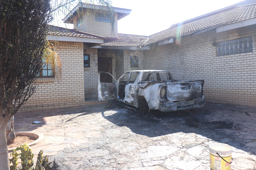 No one was injured when a GD6 Toyota Hilux double cab belonging to Local Government and Rural Development minister, Mr Kgotla Autlwetse burnt to ashes at his residence in Makolojwane, Serowe.