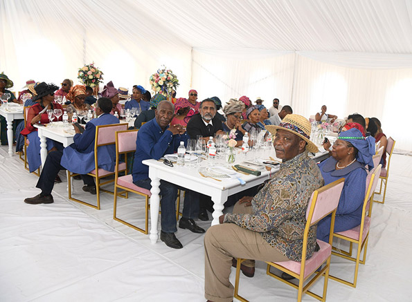 The tent was glamorously decorated with golden chairs and tableware, a classic reflection of wealth, prosperity and ultimate beauty. The cake, a two tier wrapped around and fished with golden iced roses. In his speech Kgosi Malope II underscored his contentment and gratitude for the day.