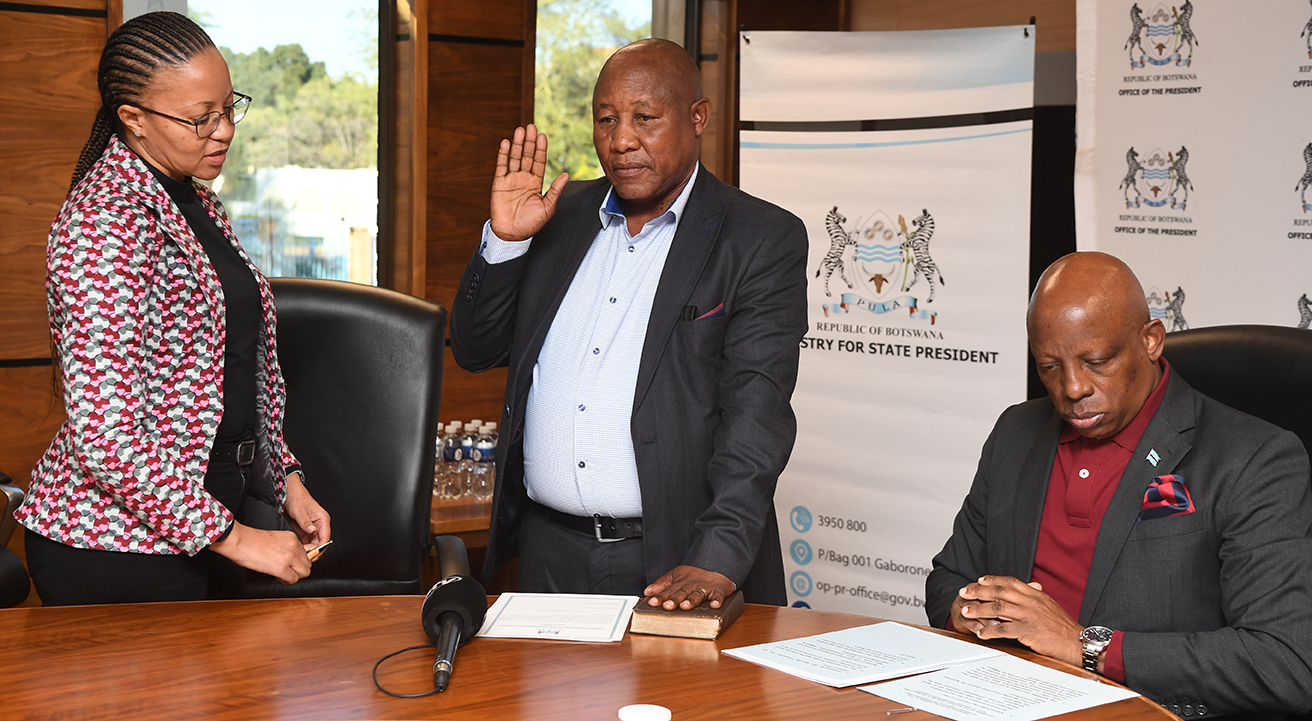 When swearing him in, Minister for State President, Mr Kabo Morwaeng said he was confident that his experience as a former senior government official would greatly assist the committee.
