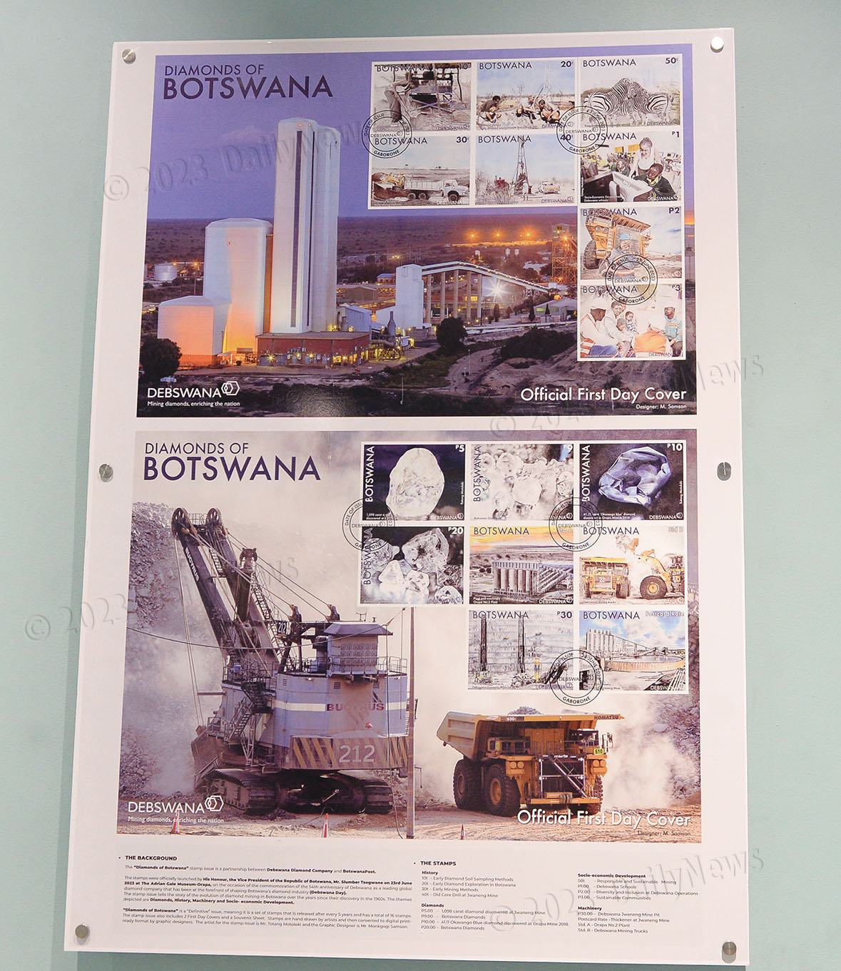 Debswana Managing Director Mr Andrew Motsomi stated that Debswana had wholly sponsored the stamps project and the launch at a combined value of P950 000.