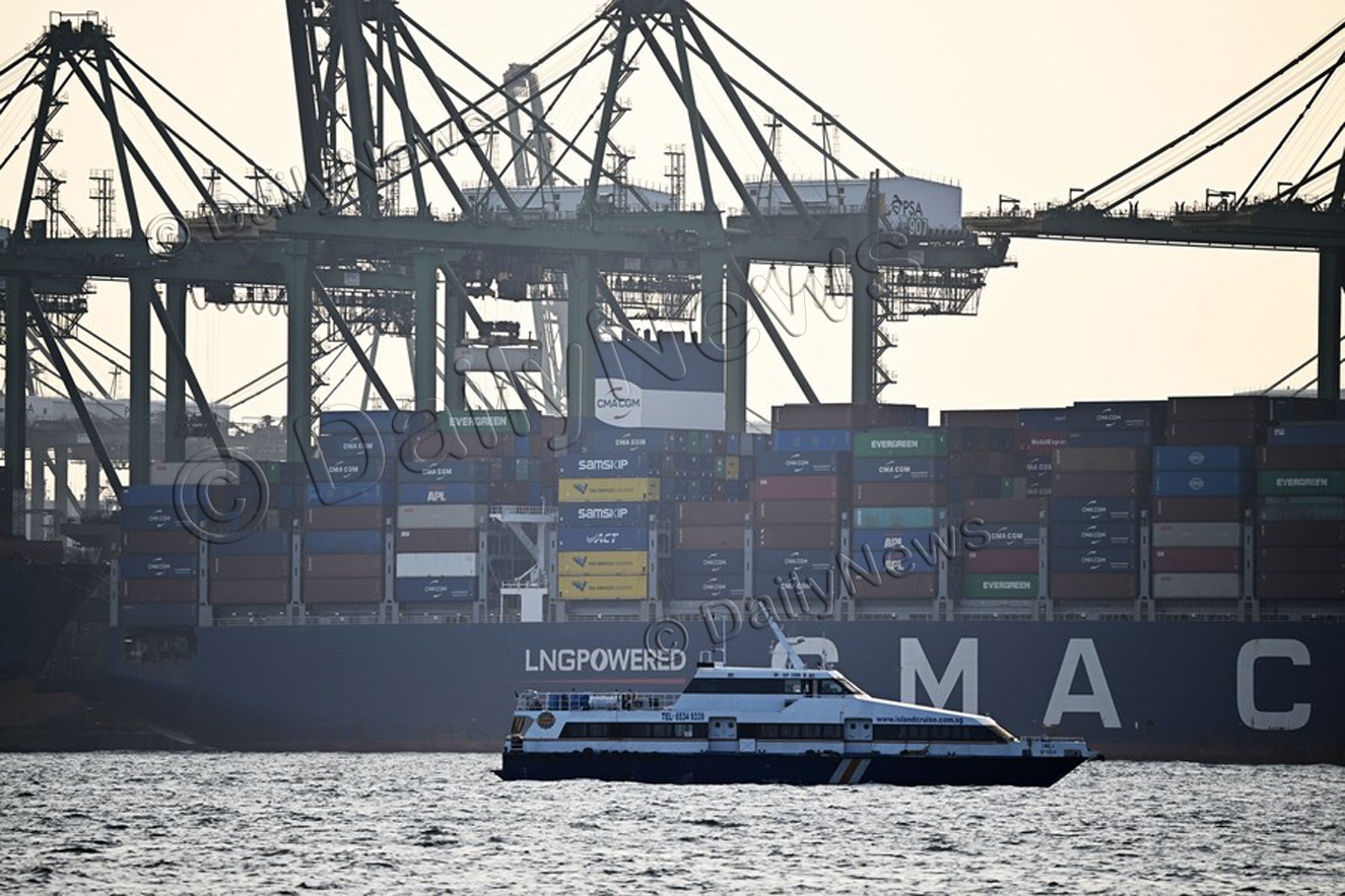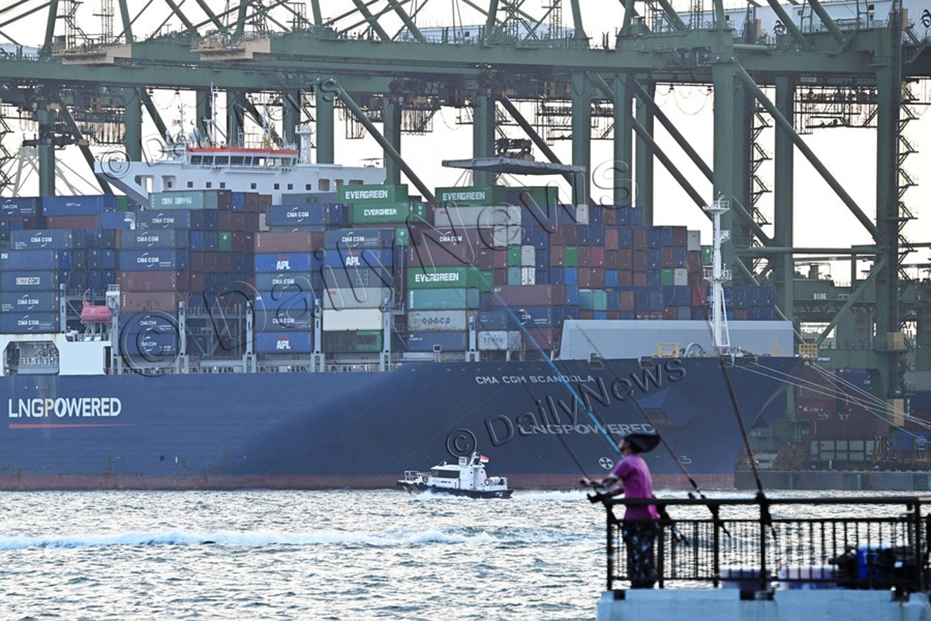 A cargo ship is berthed at Singapore's Pasir Panjang Container Terminal on September 8.