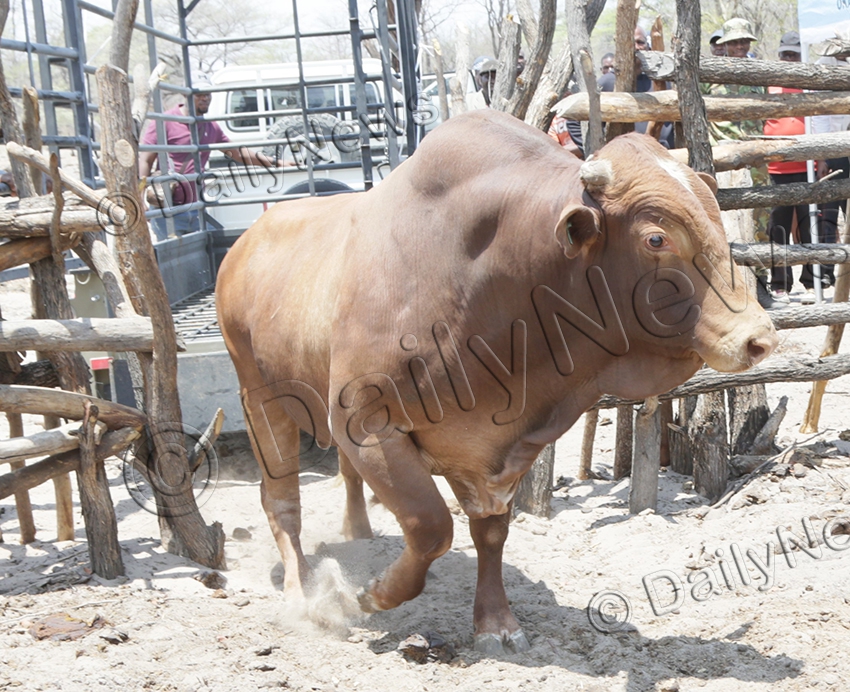 President Dr Mokgweetsi Masisi (right), Assistant Minister of Agriculture, Mr Molebtsi Molebatsi during a pedigree Beef Master bull donation to Mr Johny Kathananga in Xwidhana cattle post near Gudingwa in Okavango on Friday. President Dr Masisi urged farmers and residents take advatange of government programmes such as artificial insemination, LIMID and Youth Development Fund to improve their livelohoods. Photo: Gaseitsiwe Moruakgomo