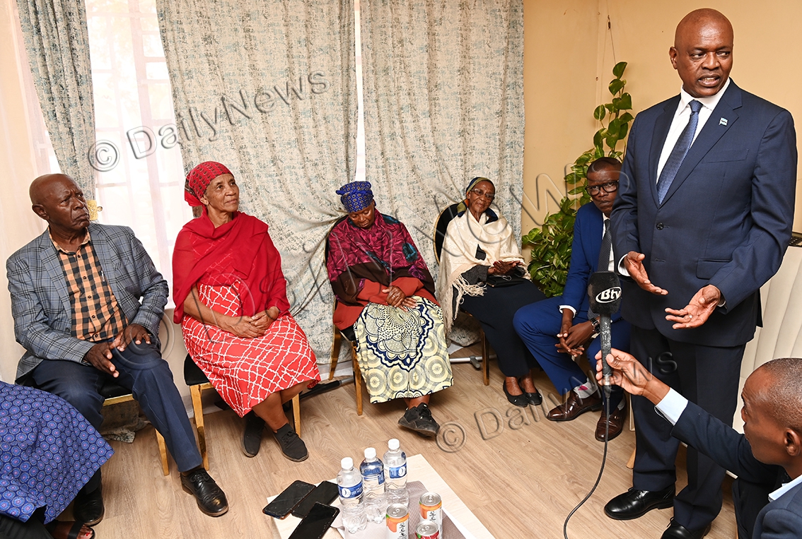 President Dr Mokgweetsi Masisi visited the Moampe family on Thursday to offer his condolences upon the passing of their daughter, Ms Goabamang Moampe, who served as an elder of Xhosa 2 ward in Mahalapye. The President was accompanied by Mr Kgotla Autlwetse, the Minister of Local Government and Rural Development, Mr Aubrey Lesaso, the Assistant Minister of Education and Skills Development, and area MP Mr David Tshere.