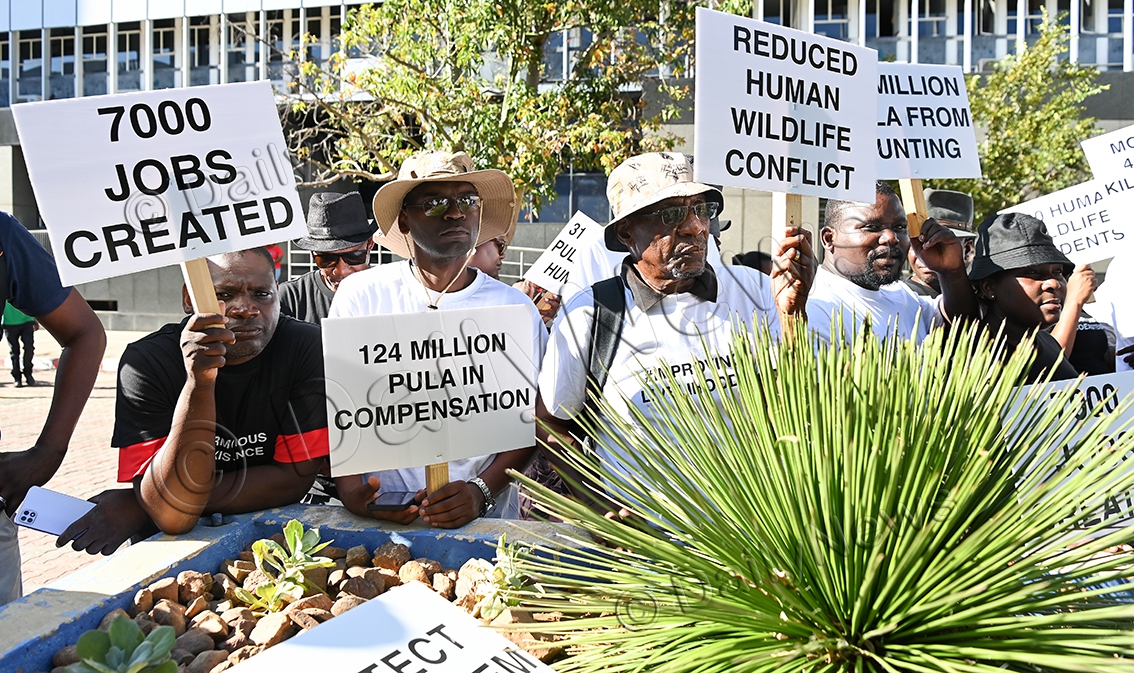 Ngamiland Council of Non-Governmental Organisations, representing communities residing alongside wildlife areas throughout Botswana,held a march from the National Stadium grounds to the British High Commission in Gaborone on March 12 to present a petition against the UK Hunting Trophies (Import Prohibition) Bill. The petition was presented by Chobe Enclave Conservation Trust chairperson, Mr Poniso Shamukuni to British High Commission nature and climate lead, Mr Mark Ssemakula, who received it on behalf of the high commissioner. Photos: Yobe Shonga