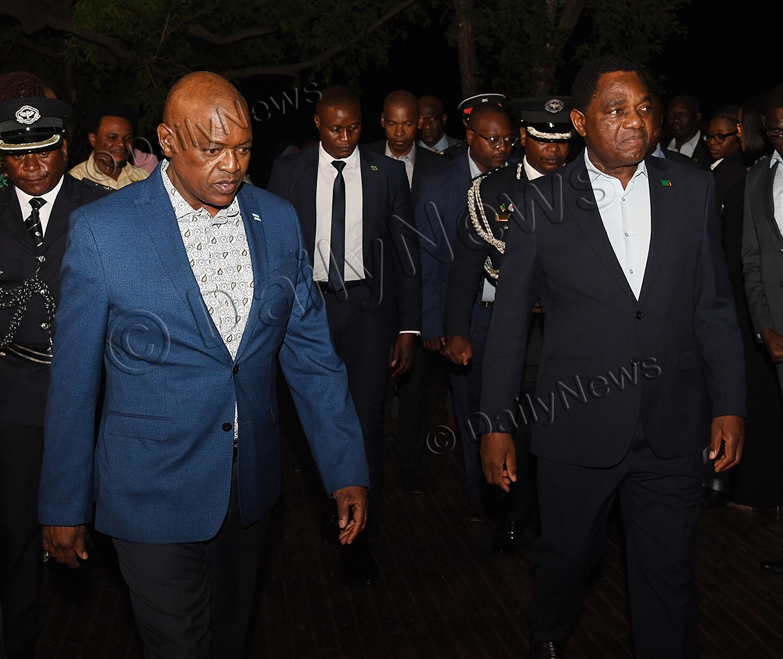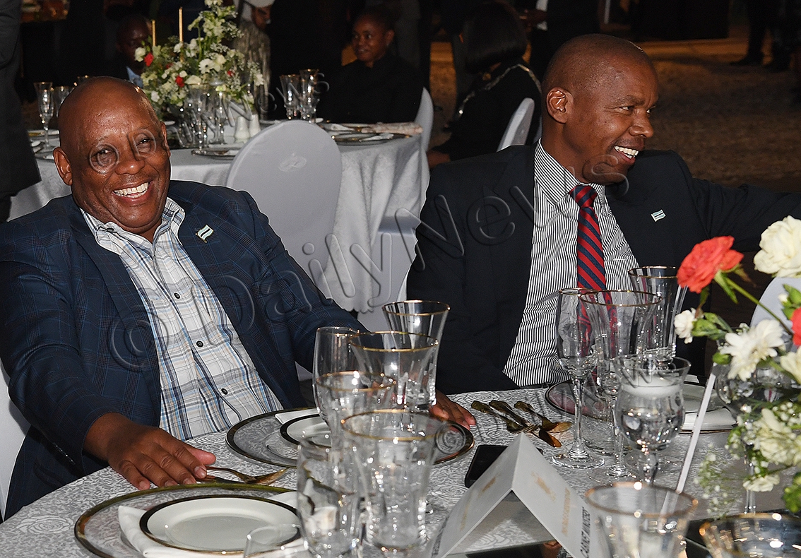 President Dr Mokgweetsi (left) and Zambia President, Mr Hakainde Hichilema during a State Dinner hosted during President Masisi working visit in Livingstone, Zambia on Tuesday. This follows a working visit to Botswana by President Hakainde Hichilema, Cabinet and senior government officials in January 2024 at the invitation of President Masisi. The two Heads of State will hold official talks on issues of mutual interest and enhanced bilateral cooperation. Today (Wednesday) a number of agreements will be signed including an agreement between Botswana and Zambia on Kazungula Bridge Establishment Authority as well as a Memorandum of Understanding on Political Consultations between the two countries.