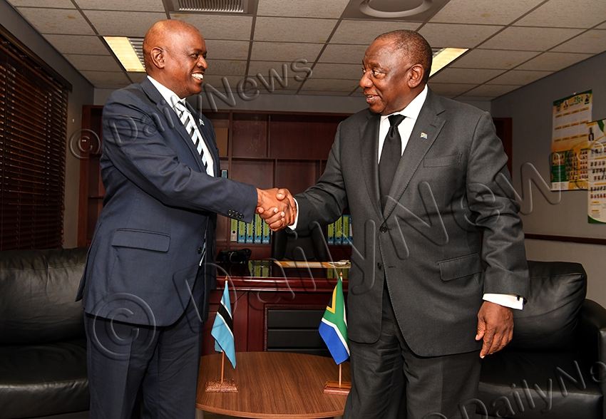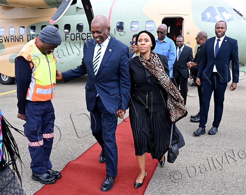 President Dr Mokgweetsi Masisi and First Lady Neo arrived in the Limpopo Province, South Africa this morning to visit the scene of accident where 45 Batswana died, when the bus they were travelling in plunged off Mamatlakala Bridge on a mountain pass, bursting in flames as it hit a rocky ground. They were travelling to Moria, where a popular pilgrimage is hosted every Easters holidays. President was welcomed at Polokwane International Airport by Botswana charge d’Affaires, Ms Gaogane Mothobi and other officials. Dr Masisi was accompanied by Minister of Foreign Affairs, Dr Lemogang Kwape, Minister for State President, Mr Kabo Morwaeng, Minister Labour and Home Affairs, Ms Anna Mokgethi, Kgosi Kgari Sechele III, minister and head of generale-Botswana, St Engenas ZCC, Mr Oreeditse Molebatsi and senior government officials. South Africa President Mr Cyril Ramaphosa and President Masisi had a briefing before visiting the scene of the accident. Photos: Yobe Shonga and Godfrey Mpuse
