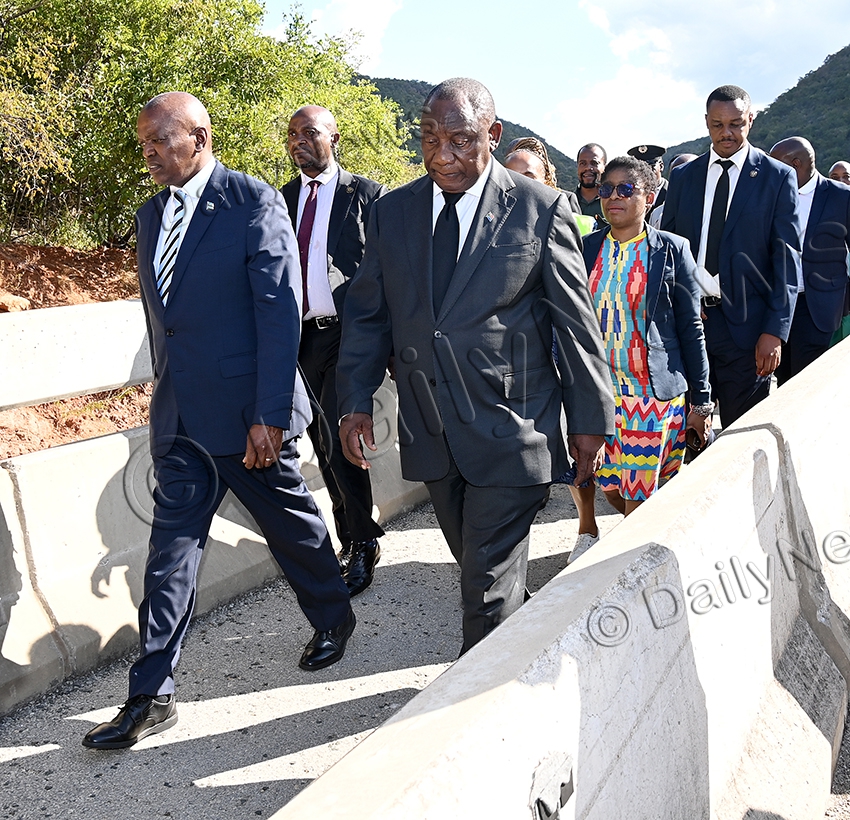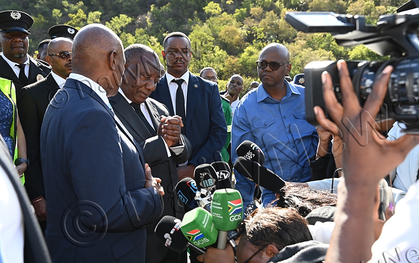 President Dr Mokgweetsi Masisi, First Lady Neo, South Africa President, Mr Cyril Ramaphosa and other officials visited the scene of accident this afternoon, where 45 Batswana died, when the bus they were travelling in plunged off the Mamatlakala bridge on a mountain pass, bursting in flames as it hit a rocky ground. President Masisi described the accident as the most horrific in the history of the country. He thanked President Ramaphosa, South African government and Mamatlakala residents for the support they gave Botswana during the difficult time. Photos: Yobe Shonga and Godfrey Mpuse