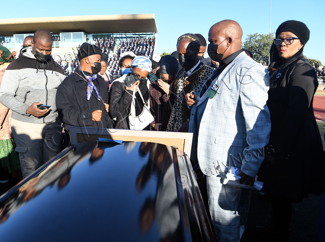 On the day of the funeral on Saturday morning, as 45 hearses, each carrying a dark, wooden oak-like casket, arrived in a military-like formation at the Molepolole Sports Complex, escorted by sirens and police blue lights, an eerie hush descended upon the crowd.