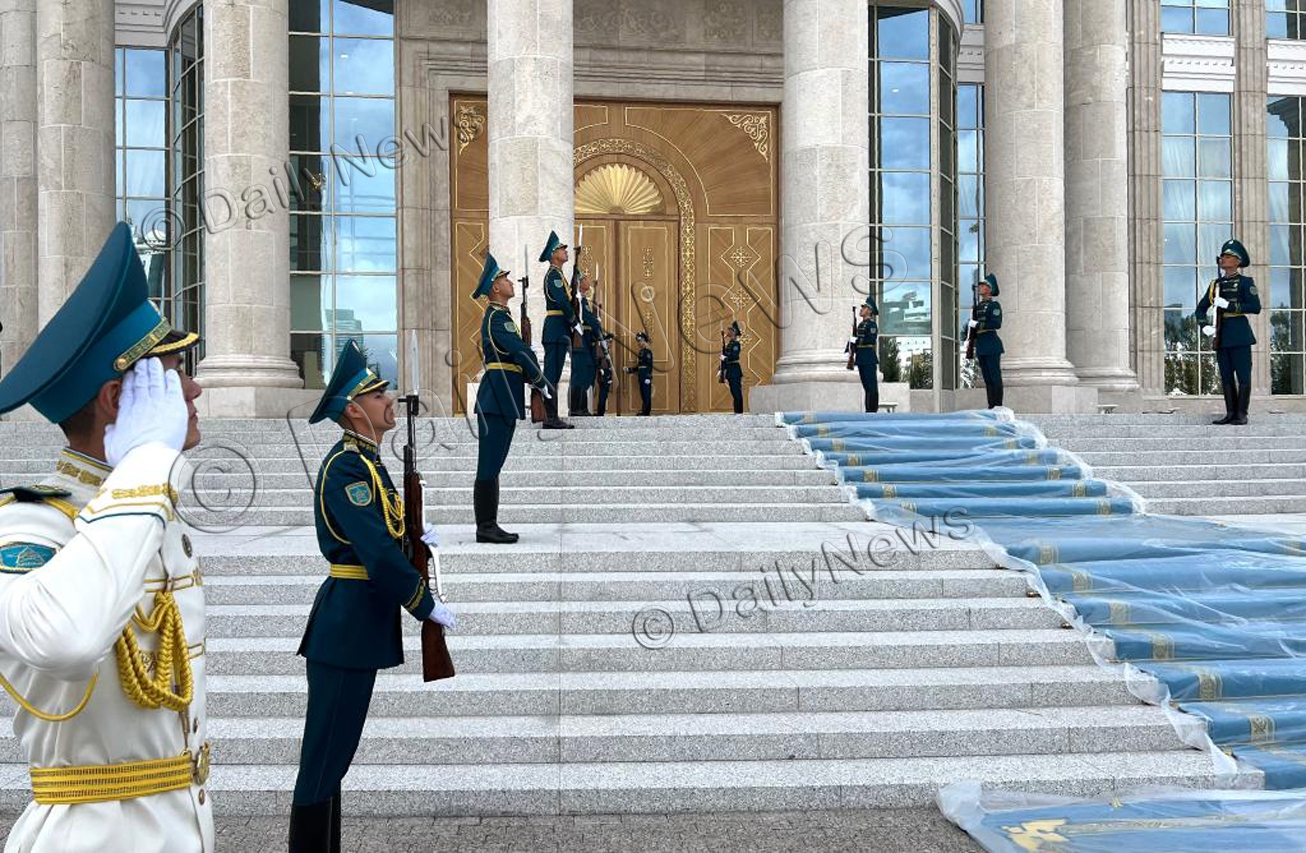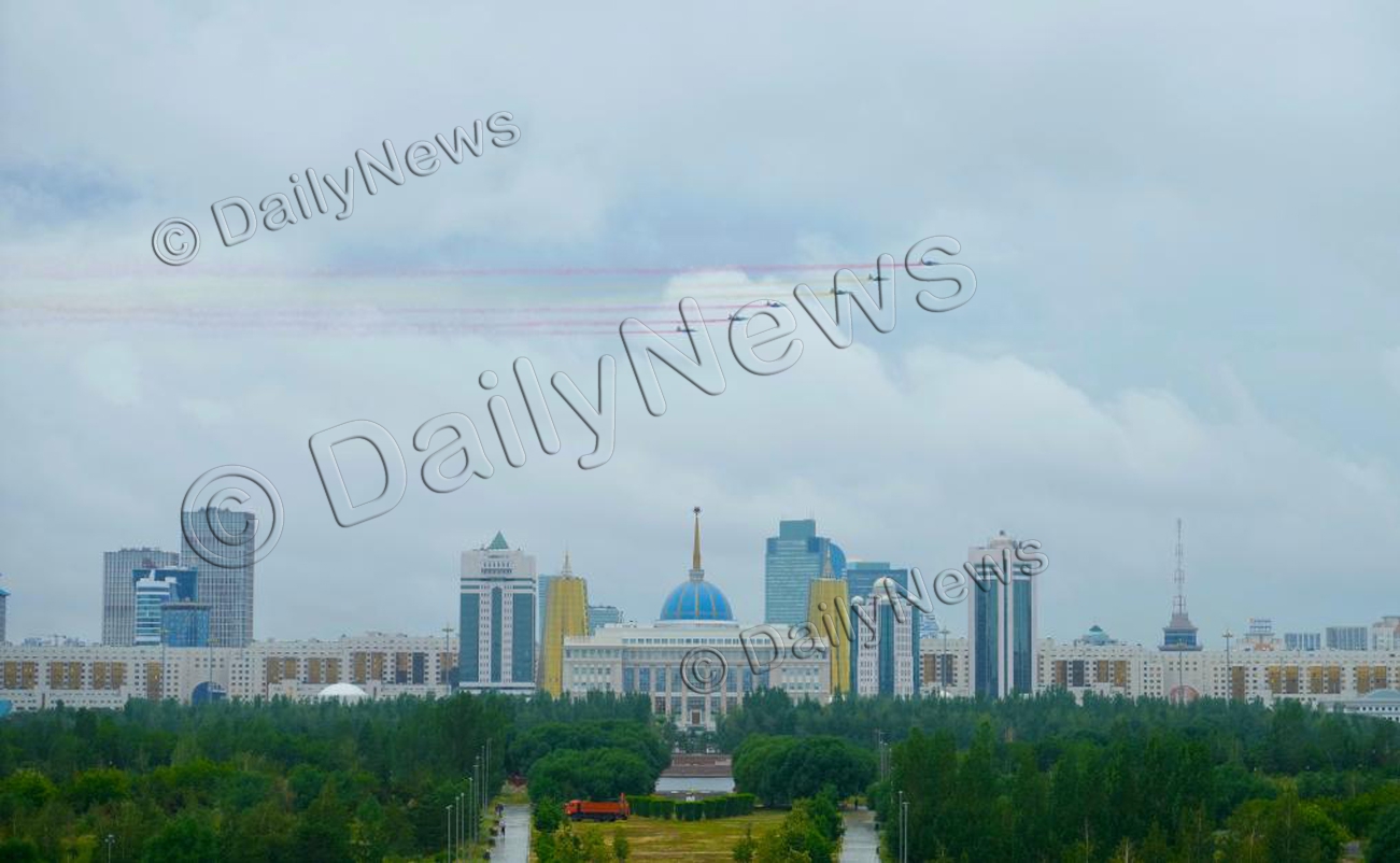 Kazakh fighter jets painted the sky with colored smoke trails as Kazakh President Kassym-Jomart Tokayev hosted on Wednesday a welcome ceremony for visiting Chinese President Xi Jinping.