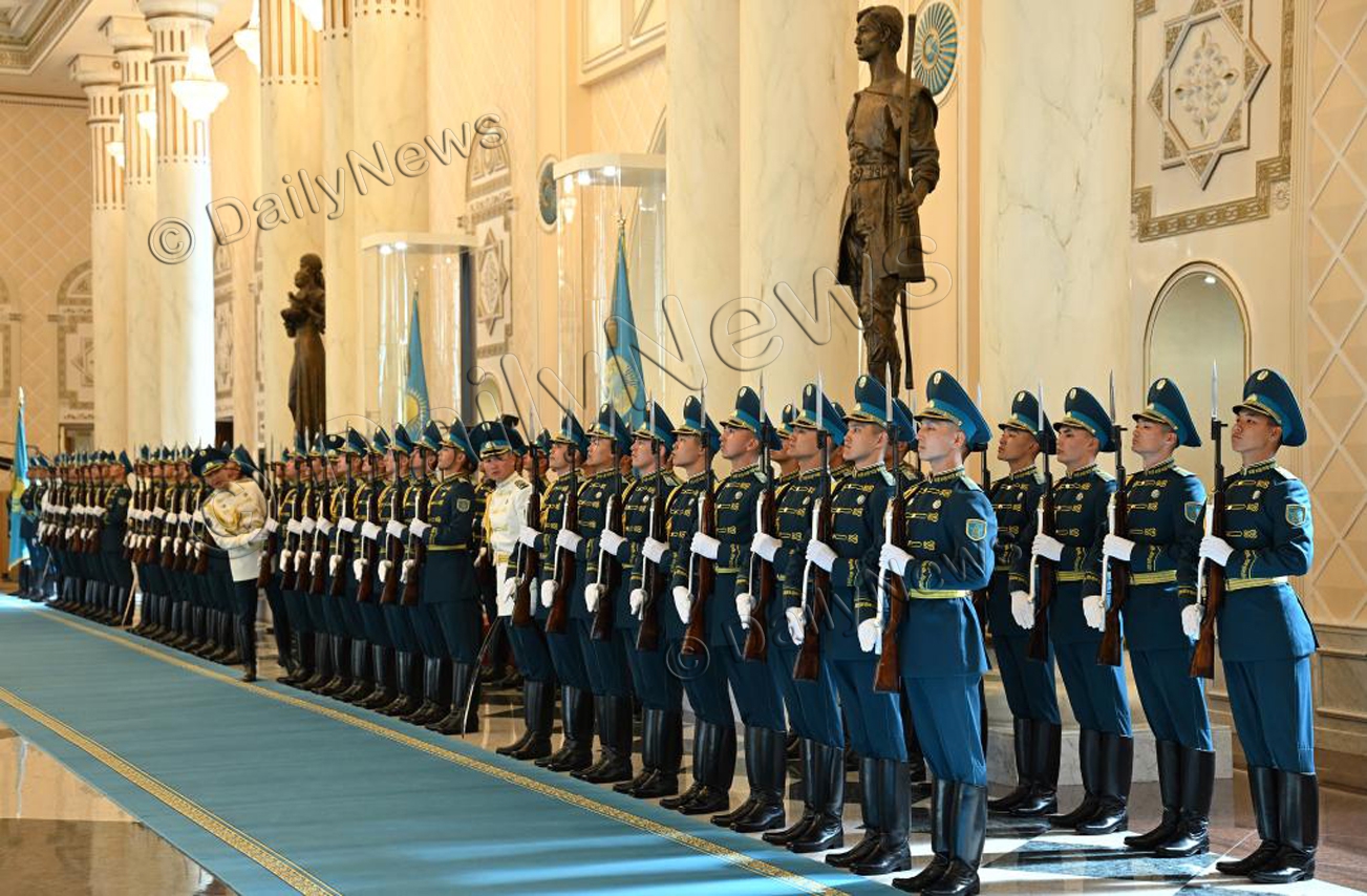 Three Kazakh Air Force fighter jets took off to escort Xi's plane after it entered the country's airspace. Tokayev held a grand welcome ceremony at the airport.
