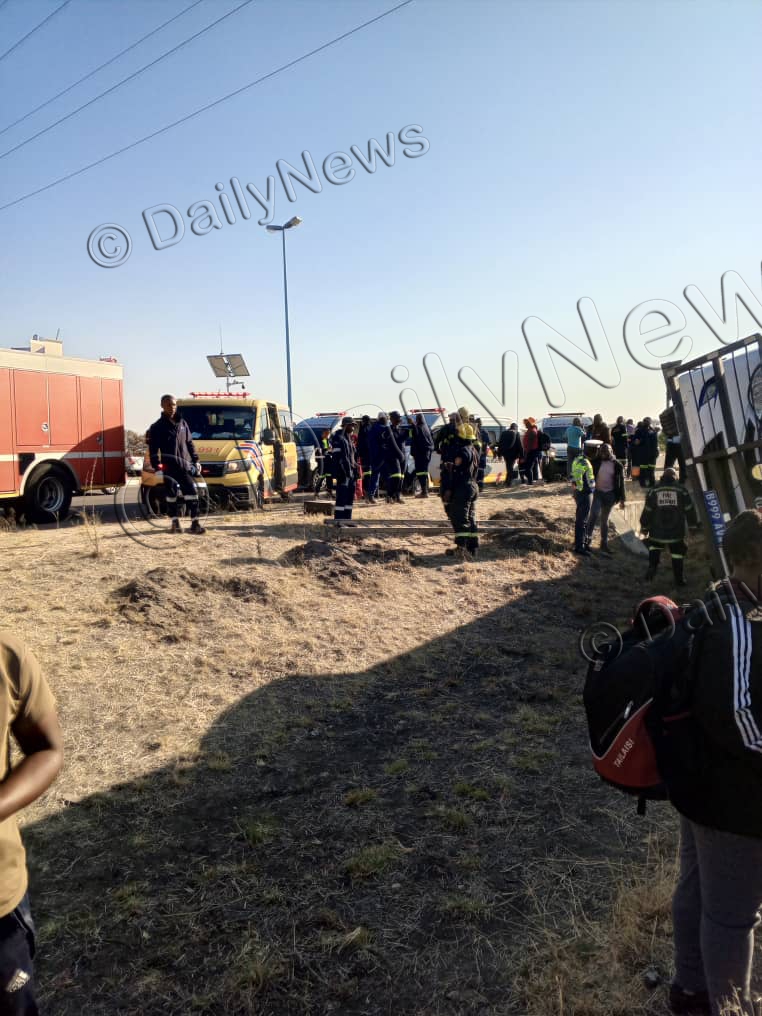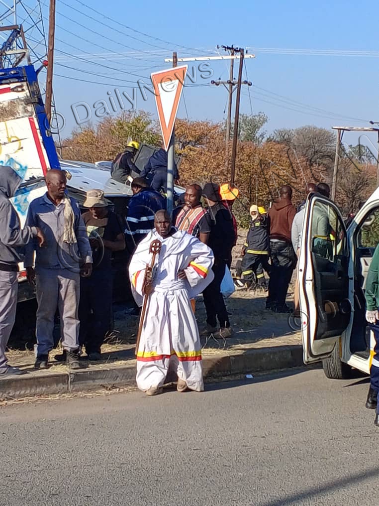 A bus carrying members of the Jowani Masowe Nyenyedzi Nomwe church from Zimbabwe overturned near Dumela Industrial site turn-off, causing traffic to come to a standstill in Francistown. The incident occurred as the bus was en route to Gaborone for a conference. Accordingg to one of the occupants, the driver, attempted to avoid a collision with a truck, swerved but unfortunately ended up in a deep culvert. Most occupants escaped unharmed, with only three sustaining minor injuries and were taken to Nyangabgwe hospital.
