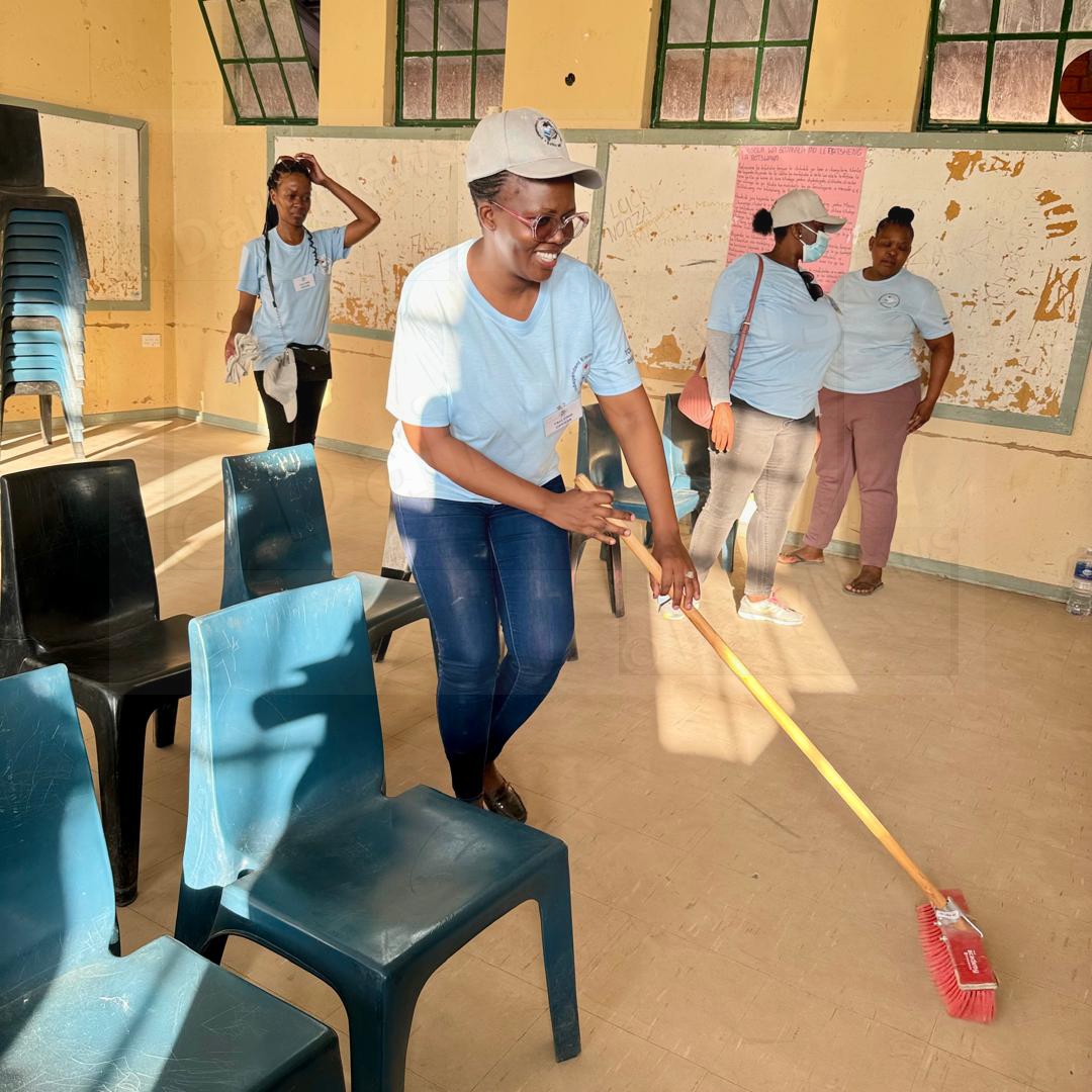 Returning officer for New Xanagas Polling district in Charleshill constituency, Ms Tsholofelo Molebatsi and her team preparing New Xanagas Primary School tallying centre as polling stations are left with a few minutes to close.