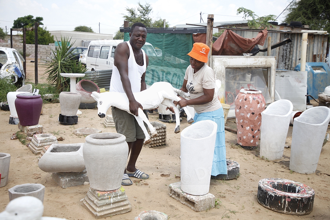 Her dedication to quality ensures that each pot withstands Botswana’s harsh weather conditions, a feat achieved through the use of glossy paints and sturdy materials like plaster key.