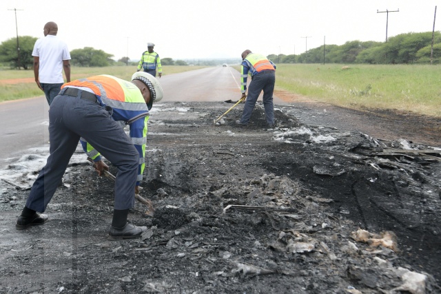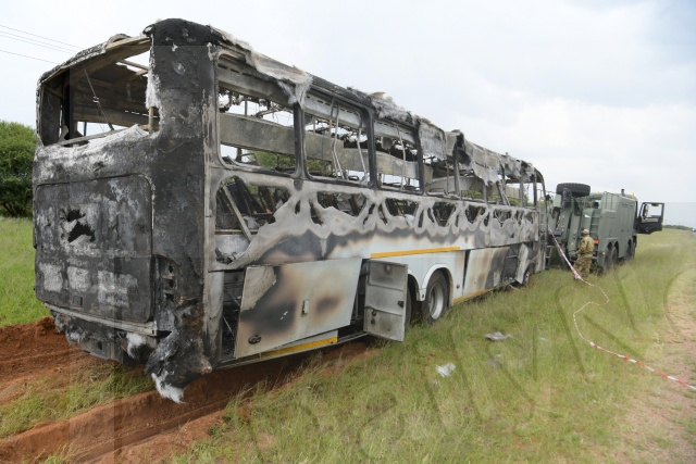 The four men on board had been attending to mechanical faults in the bus at a workshop in Mogoditshane and were testing its road worthiness when it caught fire.