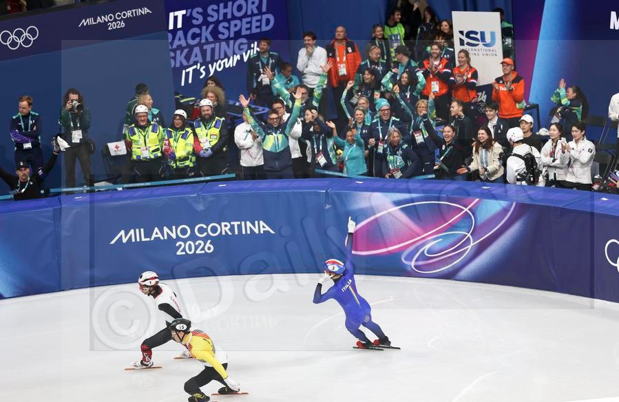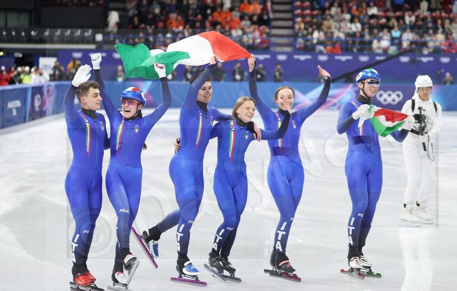 After host nation Italy won the short track speed skating mixed team relay gold at the 2026 Winter Olympics on Tuesday, the Milano Ice Skating Arena erupted into cheers.