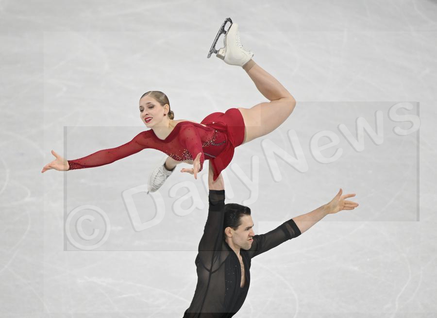 Skating to French composer Maxime Rodriguez's El Abrazo, the pair led in both technical elements and program components, opening up a comfortable 4.55-point cushion. Georgian pair Anastasiia Metelkina and Luka Berulava placed second, while Canada's Lia Pereira and Trennt Michaud sat third.